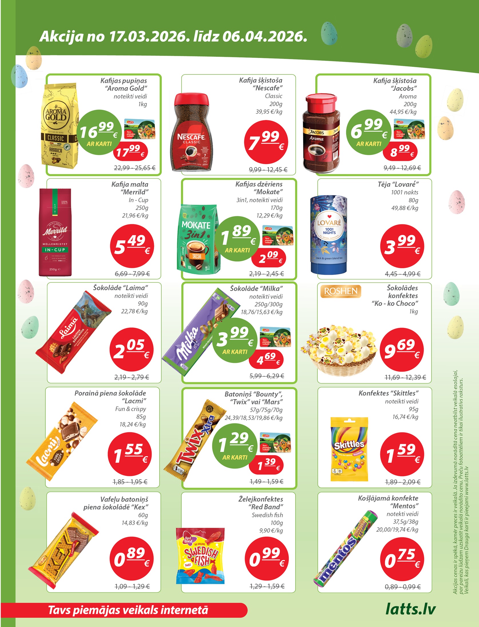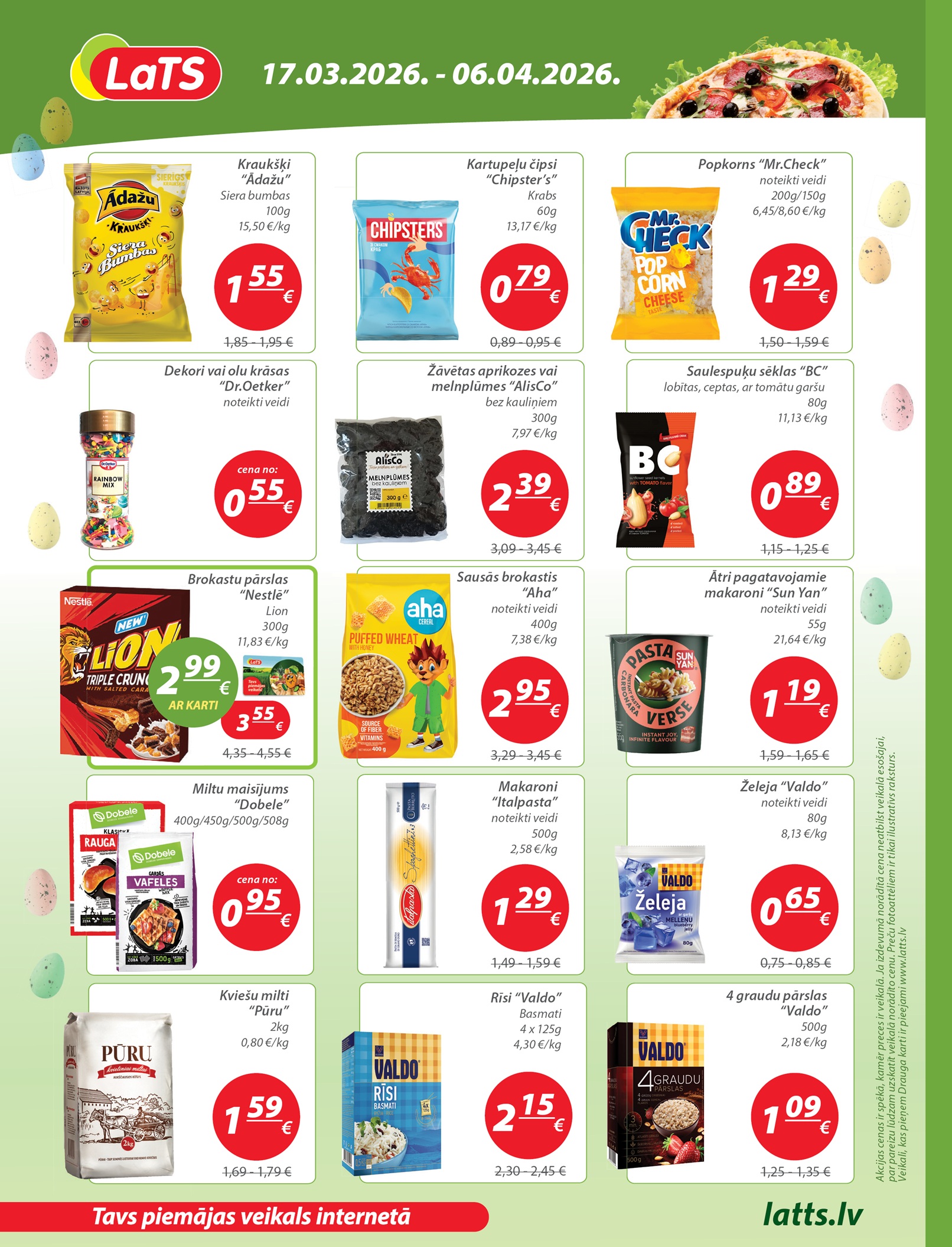 Akcijas spēkā LaTS veikalos visā Latvijā. Akcijas periods: 17.03.2026. - 06.04.2026.